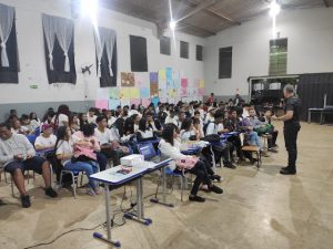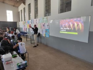 A direção da escola solicitou que a palestra fosse sobre Sífilis, tendo em vista um alto índice da doença entre os adolescentes e jovens! Os dados foram coletados pelos centros de saúde que recebem as adolescentes grávidas para a bateria de exames onde muitos resultados são positivos para Sífilis.
